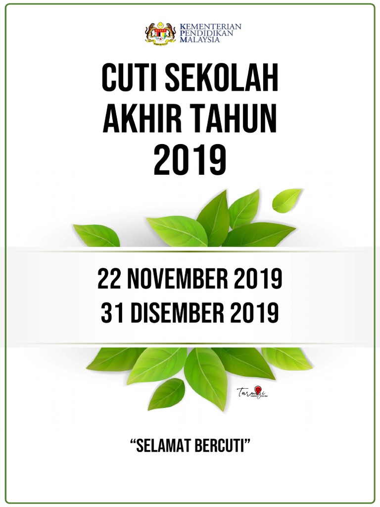 Cuti ini tidak perlu diganti. Berikut adalah tarikh cuti sekolah 2019 untuk rujukan anda. Berikut adalah tarikh cuti bagi sesi persekolahan bagi tahun 2019 sepertimana yang diumumkan oleh kementerian pendidikan malaysia. Berikut ialah 4 penggal cuti sekolah malaysia pada tahun 2019 Mulakan rancangan cuti anda untuk tahun 2020!