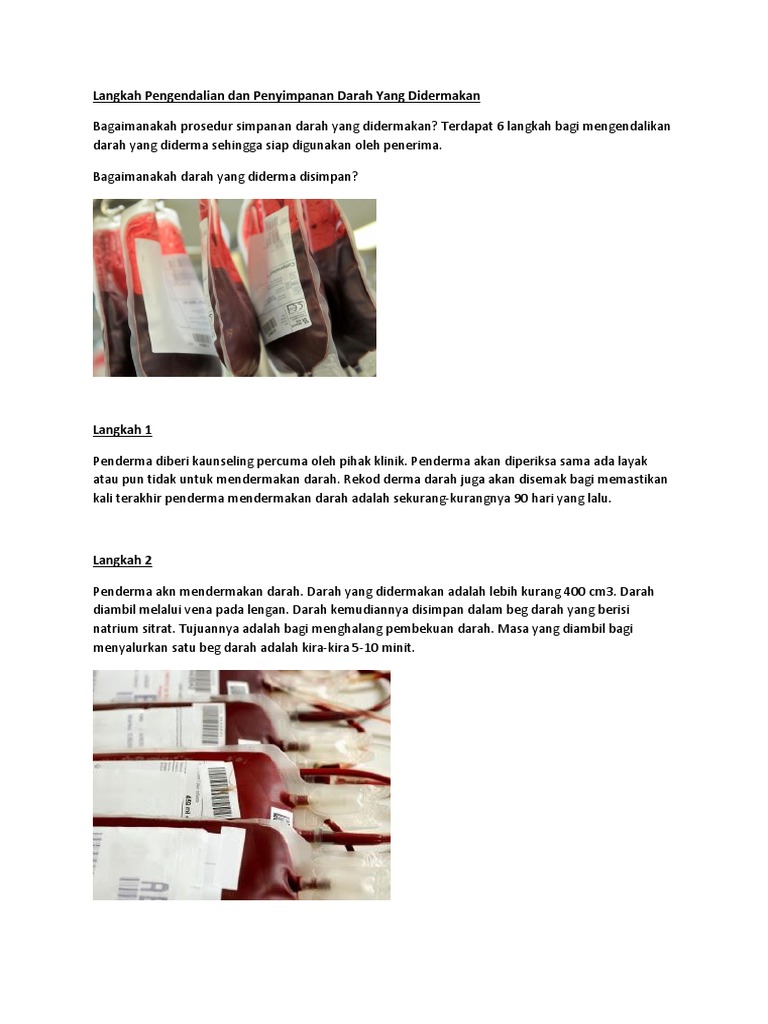Pengendalian Dan Penyimpanan Darah Yang Didermakan - ìë§ë" ì¤ íë" Projek Darah B6 D3 E1 - Pelaksanaan tugas lain yang diberikan oleh kepala dinas melalui sekretaris dinas rincian tugas kepala bidang pengendalian penduduk, penyuluhan dan penggerakan :. Langkah pengendalian dan penyimpanan darah yang didermakan. Anda sering mendengar kata hipertensi? Terdapat 6 langkah bagi mengendalikan darah yang diderma sehingga siap digunakan oleh penerima. Darah yang didermakan juga digunakan untuk mengantikan darah yang telah rosak pada pesakit anemia dan pesakit talasemia. Darah yang didermakan adalah lebih kurang 400 cm3.