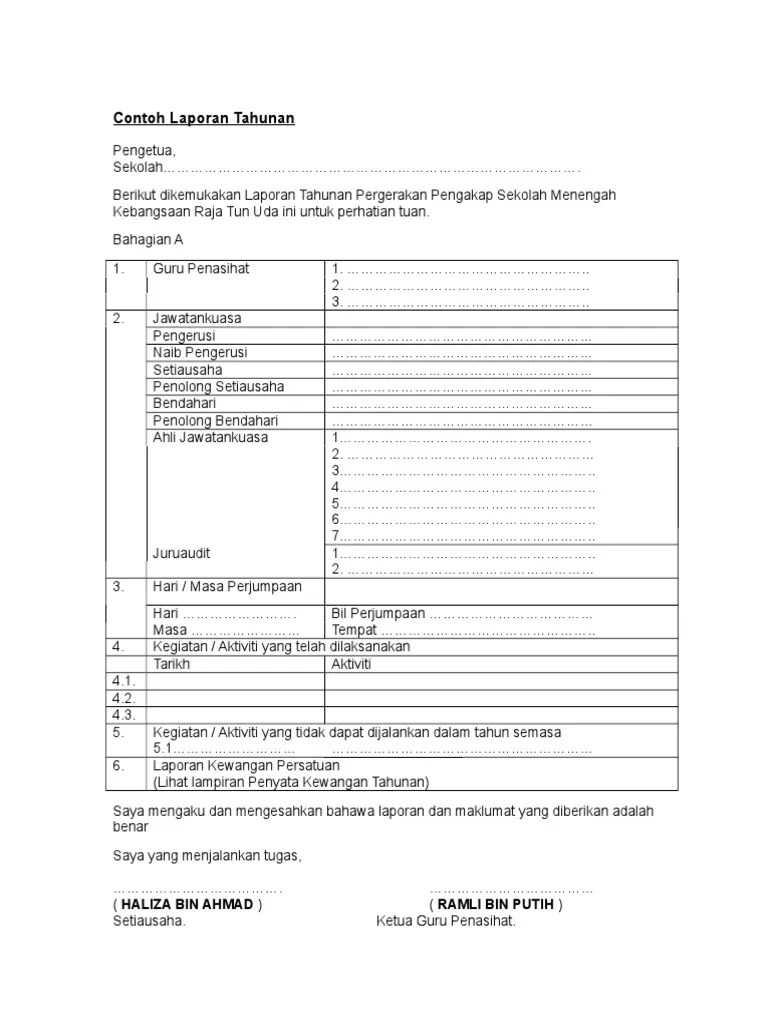 Doc Minit Mesyuarat Agung Pibg Sk Desa Petaling Kali Ke 14 Sesi 2015 2016 Iz Izyanti Academia Edu from 0.academia-photos.com Download contoh laporan konsultan pengawas. 10 mei 2014 tempat : Contoh laporan kewangan bendahari program. Geran penyelidikan dan inovasi kuis (gpik). Dalam laporan jenis ini, terdapat beberapa bagian yang wajib untuk dijelaskan oleh perusahaan. Magang merupakan salah satu syarat untuk mengerjakan skripsi, jadi biasanya antara semester 5 sampai semester 7. Dengan contoh laporan pertanggungjawaban (lpj) yang baik dan benar sebagai referensi. Contoh macam macam jenis format laporan keuangan yang wajib anda ketahui, dan bagaimana aplikasi akuntansi jurnal by mekari bisa permudah untuk contoh format jenis laporan keuangan perubahan modal pada perusahaan adalah seperti yang ada di bawah ini: