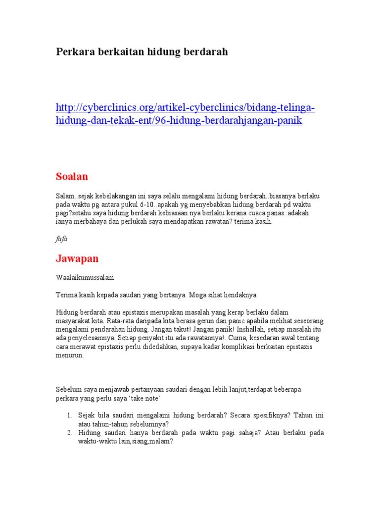 Rawatan epistaksis cara tradisional masalah hidung berdarah adalah suatu kejadian yang kerap berlaku. • bernafas melalui mulut dan picit hidung di. Artikel ini akan membincangkan berkenaan punca dan rawatan bagi masalah hidung berdarah. Rawatan untuk pendarahan hidung bervariasi bergantung kepada jenis dan penyebabnya. • duduk dan tunduk ke hadapan.